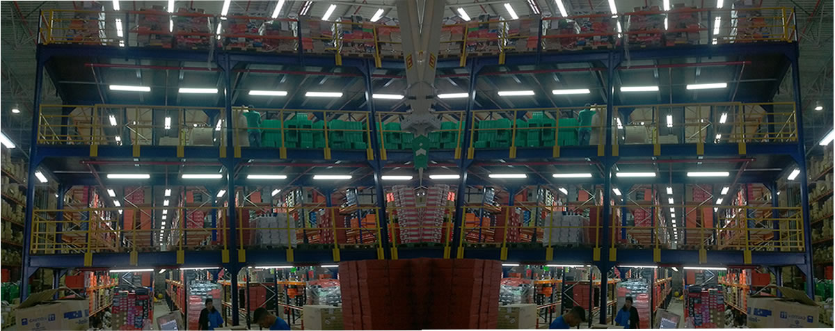 Neste cliente montamos um mezanino com 03 paviemntos anexados a estrutura porta-palete com cerca de 10m de altura. Foram 03 meses de obra..